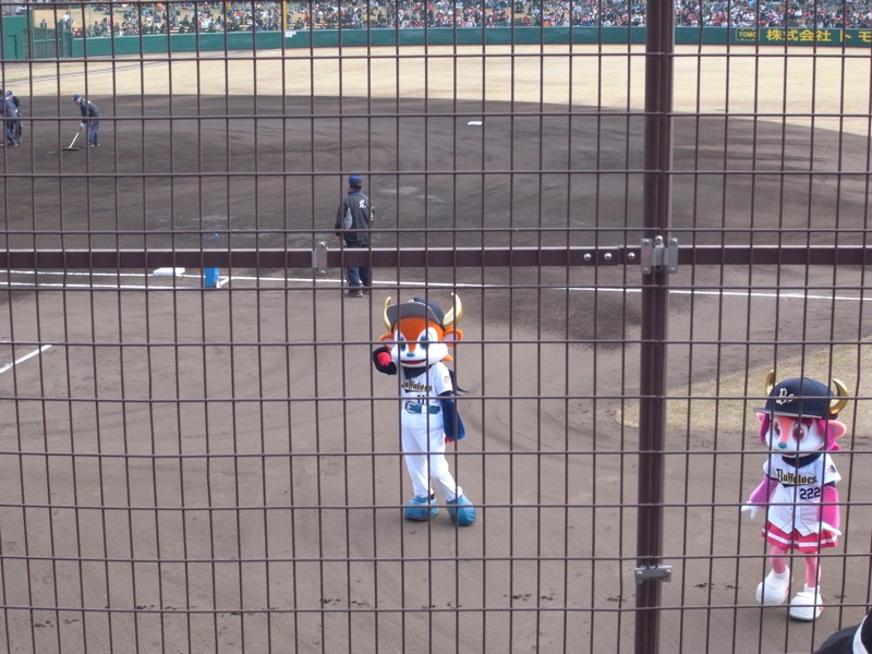 バファローズの新マスコットの二人も来てました。一様、バファローズ主催ゲームなので、雰囲気が神戸での試合のようでした。